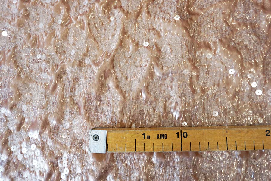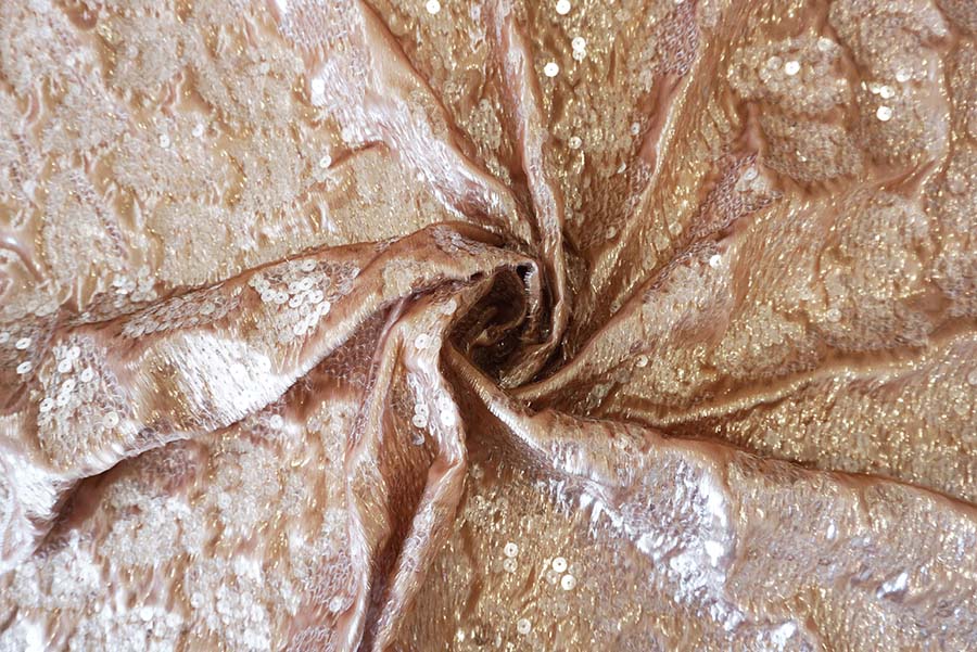 Sequins embroidered on crêpe cadi