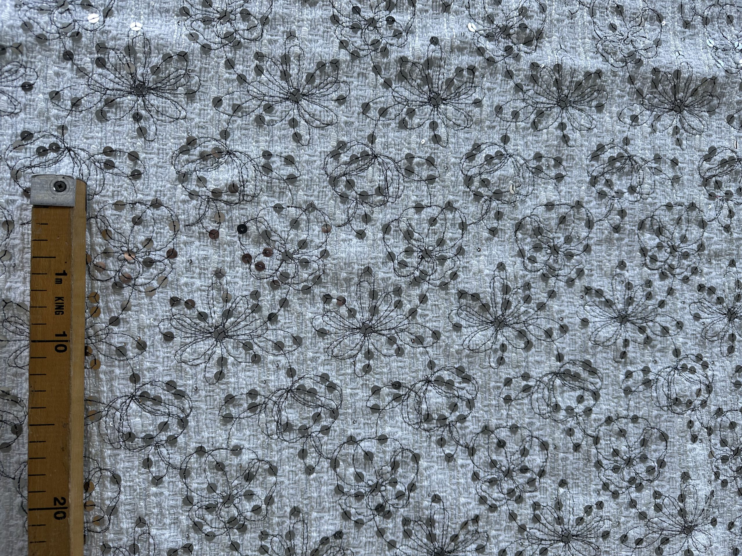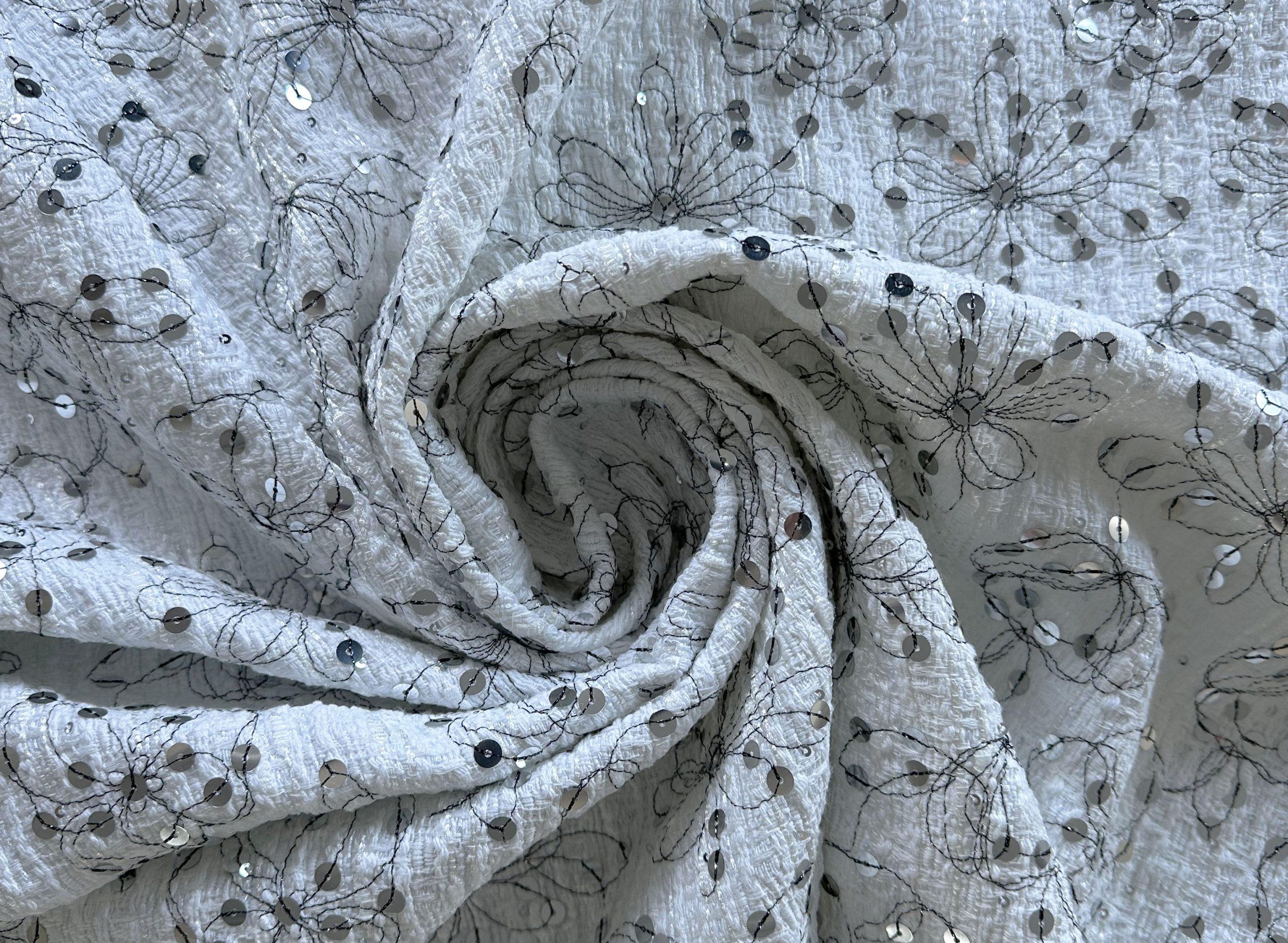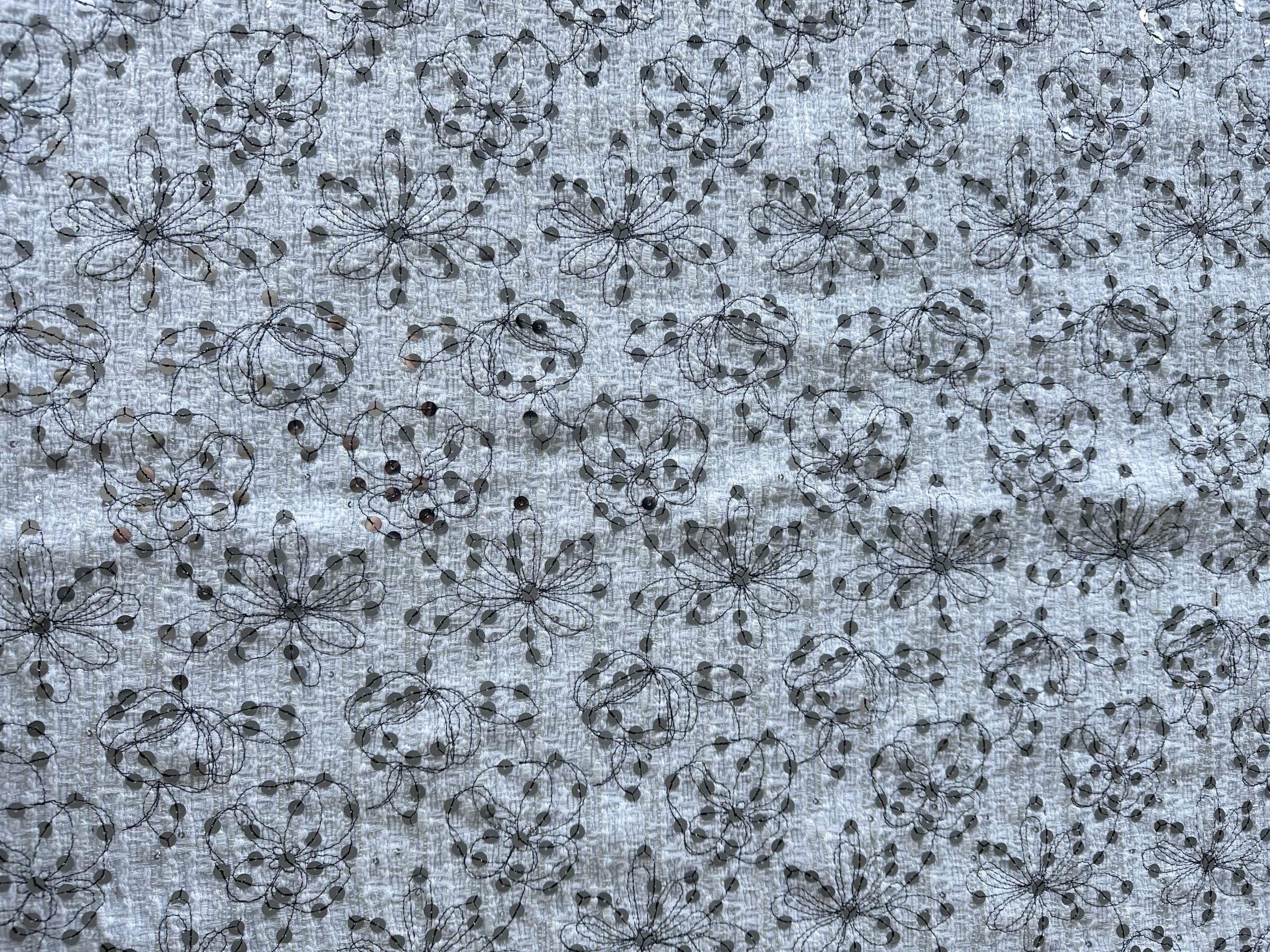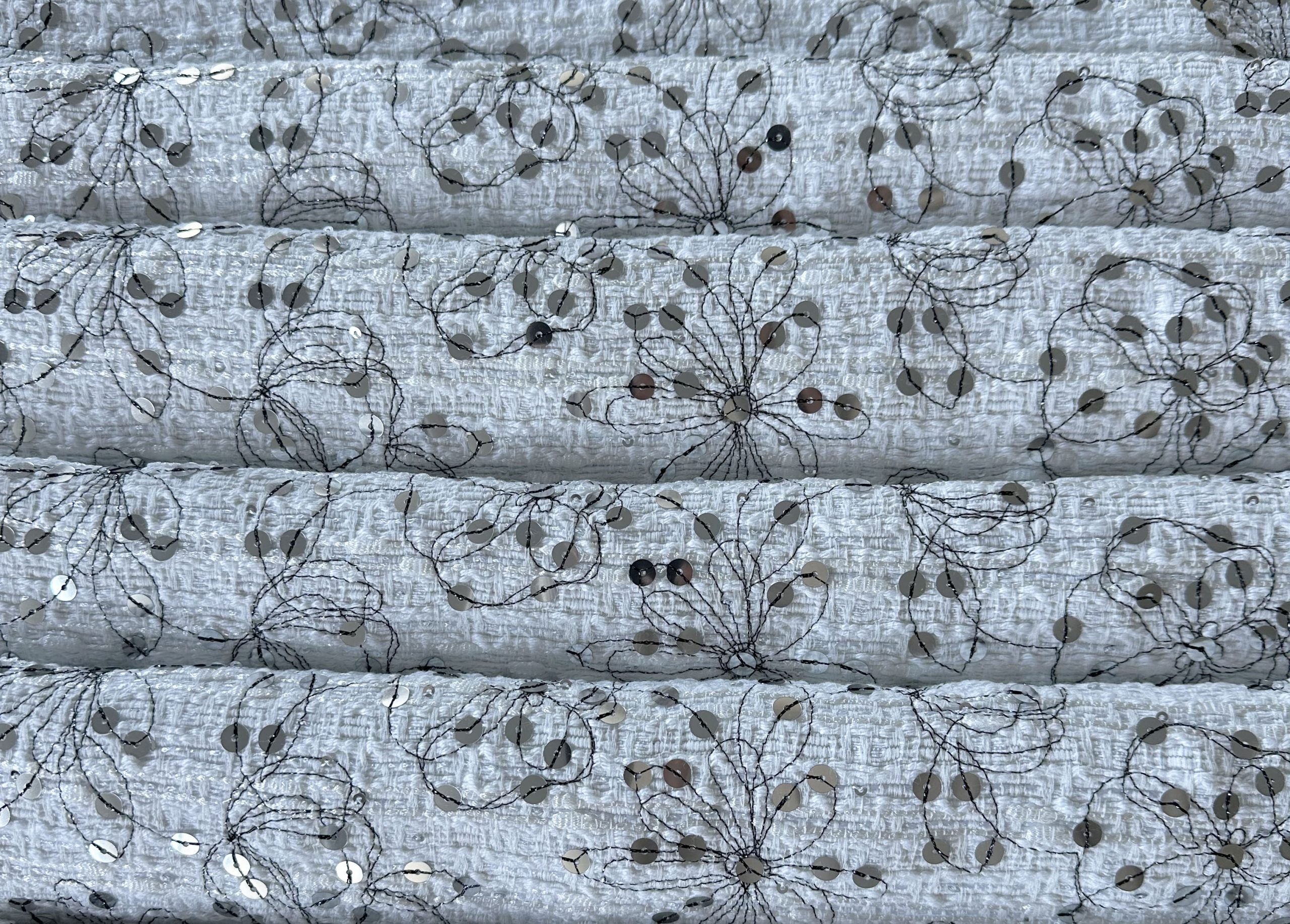 Tweed base embroidered with sequins