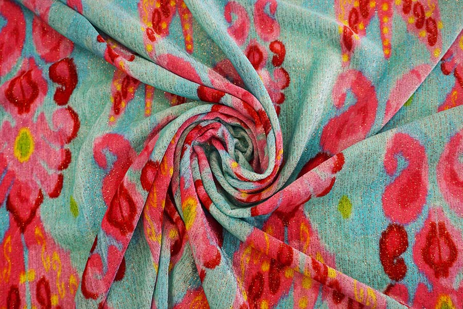 Questo prodotto è già stato inserito nella tua richiesta di preventivo.Velluto di seta/viscosa stampato con lamina